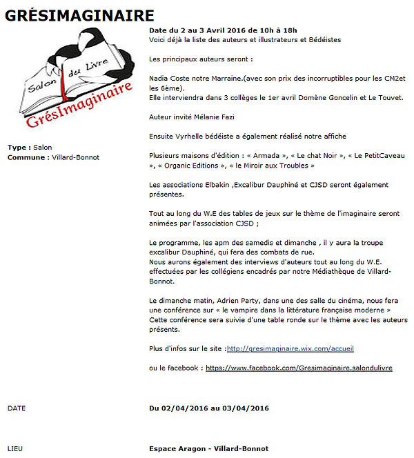 Cinquième salon du livre imaginaire Grésimaginaire.